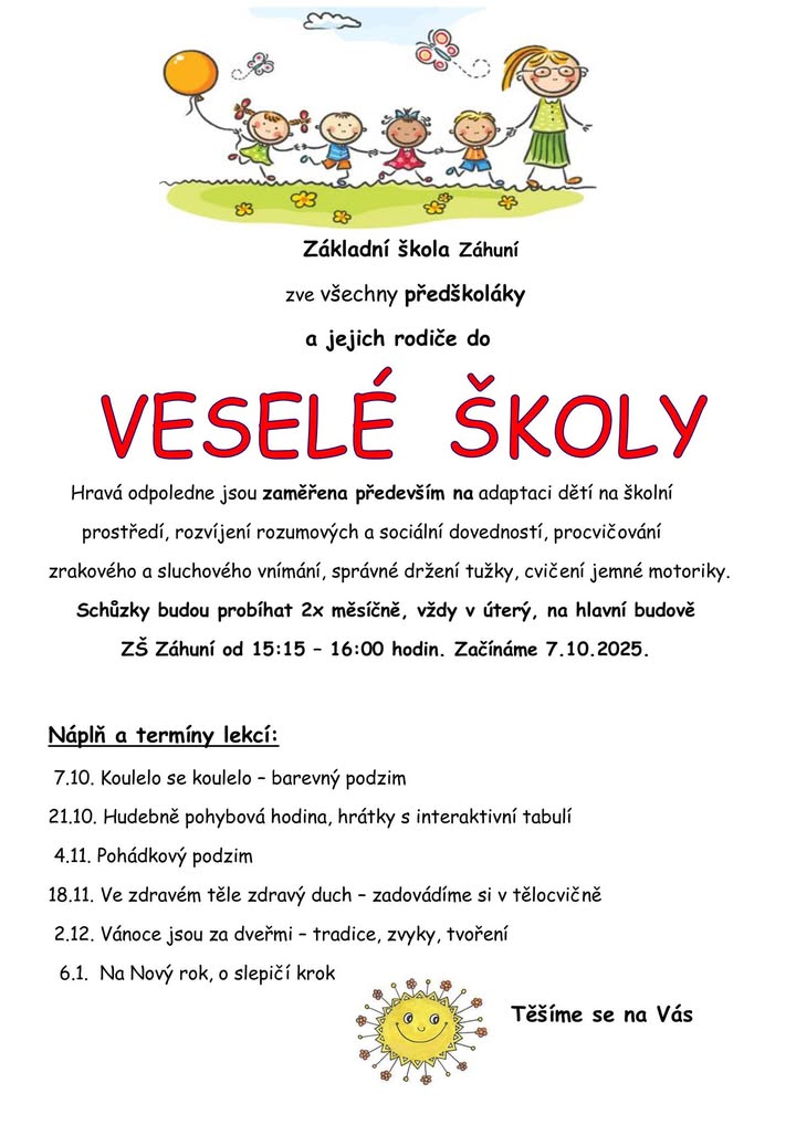 I letos chystáme pro předškoláky a jejich rodiče VESELOU ŠKOLU🙂🙂🙂