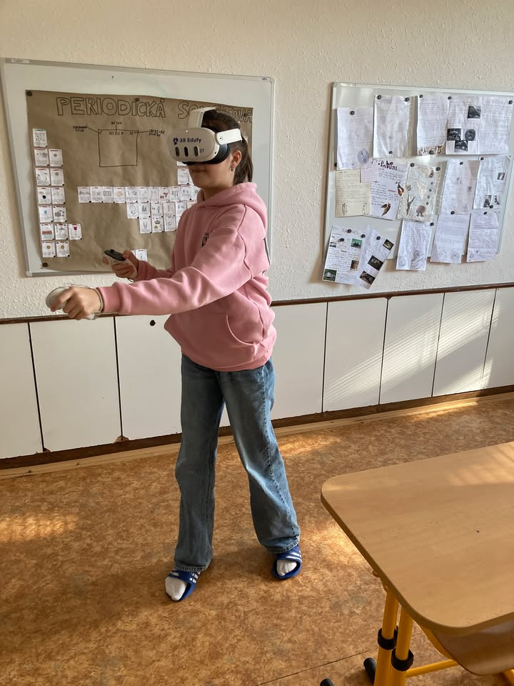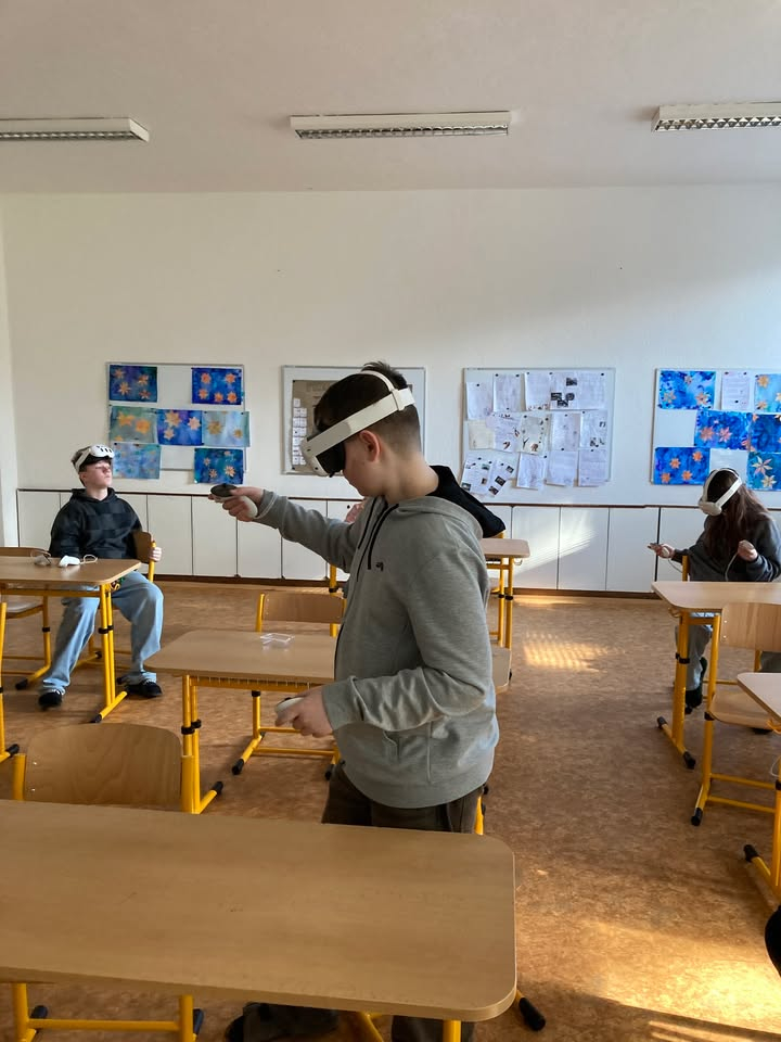 Žáci 6. ročníku se poprvé setkali s technologií virtuální reality a vyzkoušeli si práci se 3D brýlemi. V této úvodní hodině se zaměřili především na demo verzi a osvojení základního ovládání. Intuitivně se zapojovali do práce s brýlemi a technologie je zjevně zaujala. Nadšení a zájem byly od prvního okamžiku jasně znát. Zvládnutí ovládání proběhlo překvapivě rychle a bez problémů. Nové dovednosti v ovládání brýlí jim umožní naplno využít vše, co technologie nabízí a to napříč všemi předměty.