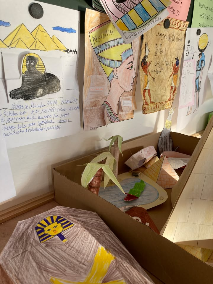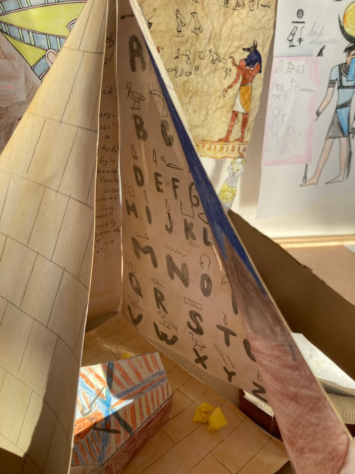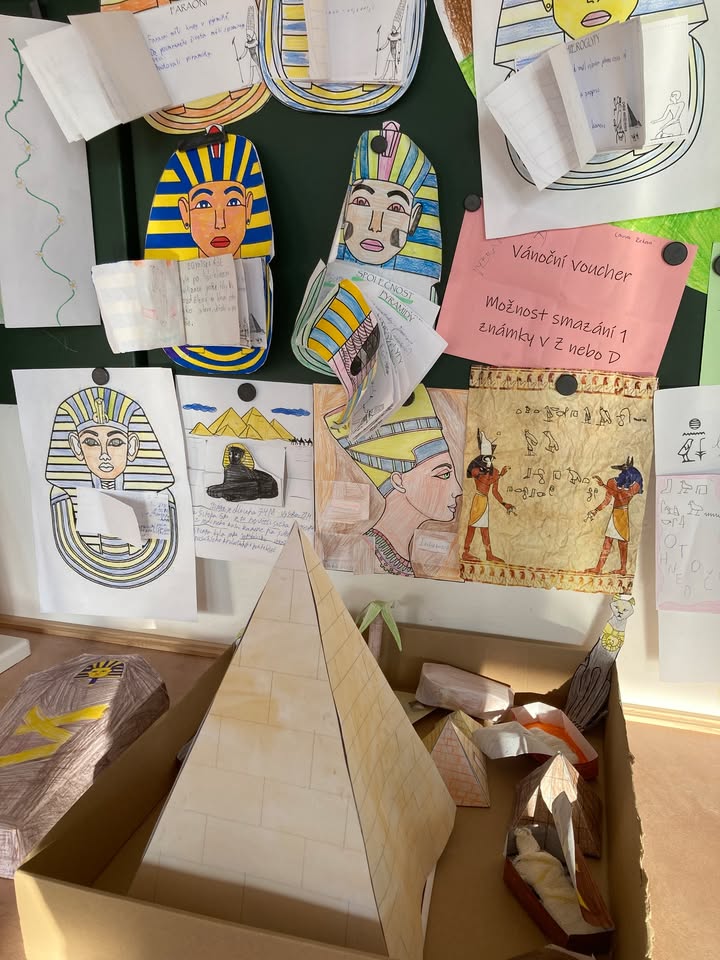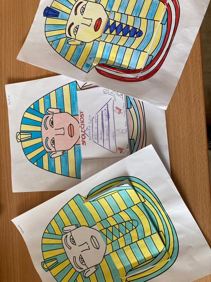 Žáci 6. ročníku úspěšně uzavřeli své putování starověkým Egyptem formou tematického projektu. Během několika hodin se ponořili do života u Nilu a objevovali tajemství jedné z nejstarších civilizací. V rámci práce vytvářeli propracované 3D modely pyramid, reliéf tamní krajiny a nechyběly ani mumie nebo hyeroglify. Nejdůležitější poznatky o faraonech, bozích či každodenním životě Egypťanů shrnuli v barevném lapbooku. Projekt jim umožnil propojit znalosti z hodin s vlastní tvořivostí. Celé dobrodružství tak zakončili s novými dovednostmi i zážitky, které jejich pohled na Starověký Egypt výrazně obohatily.