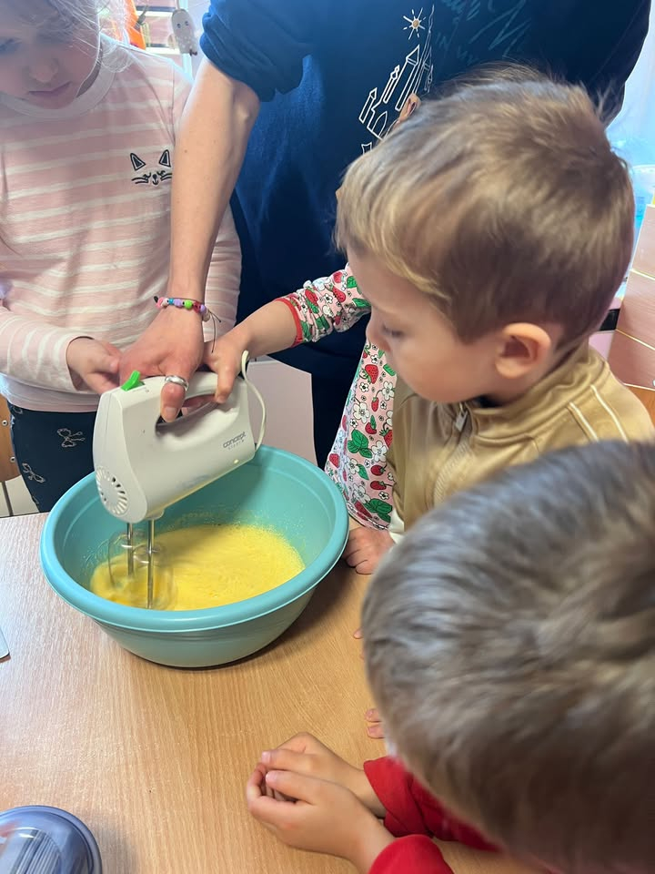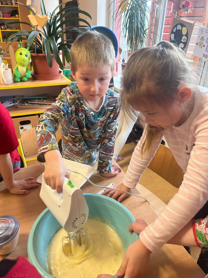 Děti ze třídy Oveček z MŠ Školská si před Velikonocemi upekly velikonočního beránka 🐑🌸 Při práci si vyzkoušely vážení surovin, šlehání těsta i vymazání formy. A protože se jim opravdu povedl, nakonec ho s chutí snědly 😋