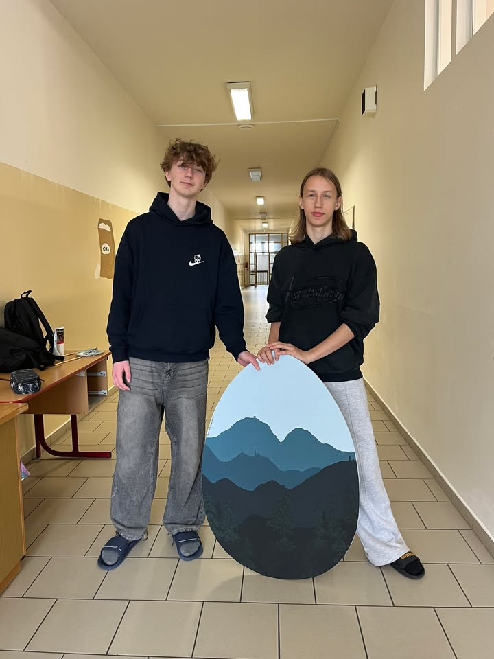 Stejně jako minulý rok jsme mohli ve výtvarné výchově ozdobit velká dřevěná vejce, která nyní zdobí naše frenštátské náměstí. Ujali se toho žáci 9.B. Malovali pomocí akrylových barev a nechali se inspirovat naším městem a okolními beskydskými vrcholy. Věnovali tomu mnoho času a můžou být na svou práci velice hrdí.